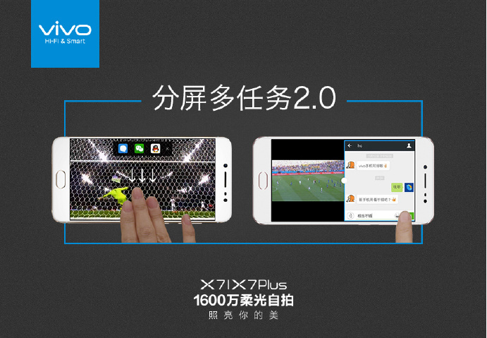 另外,vivo X7还首创了四级智能天线是目前信号最好的全金属手机;并耗时两年搭建vivo云实验室,升级了智慧引擎到2.0,建立更科学和更完善的CPU levelset体系,使手机运行更加流畅;同时在原有被动分屏的基础上,加入通过三指下滑开启的主动分屏;另外,vivo X7还加入了全局护眼模式,并通过中国标准化研究院的权威认证,有效保护视力;并且vivo X7还首发了AKM的全新定制方案——AK4376,实测信噪比高达116dB,与Xplay3s相当,并和中国最大的音乐版权方——QQ音乐开启战略合作,共同建立起音乐生态圈。