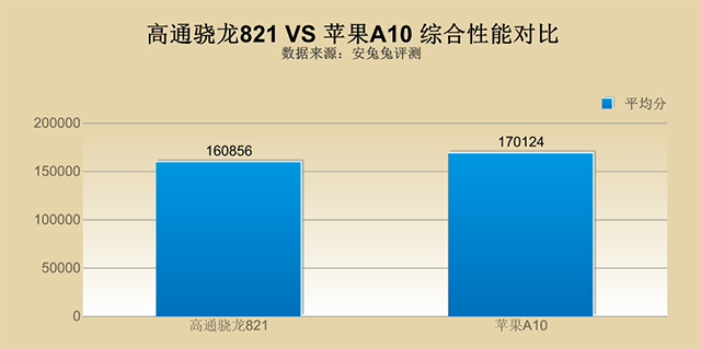 综合性能方面,高通骁龙821和苹果A10处理器都属于当下的佼佼者,安兔兔跑分成绩统统突破16万关口,后者更是摸高到17万,优势较为明显。