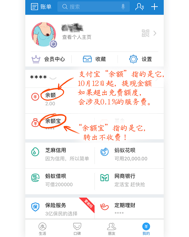 2、余额宝资金转出到余额和本人名下任意一张银行卡都继续免费。10月12日之后,大家还是可以愉快的用余额宝来理财。