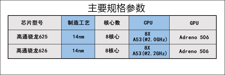 这边简单介绍下,高通骁龙626是高通在201610月发布的一款中端处理器,为骁龙625芯片的升级版。该芯片采用14nm工艺设计,内建8A53核心,并且集成Adreno506处理器。参数上面,骁龙626相比骁龙625其在主频上由6252.0GHz升级到了2.2GHz。官方表示,骁龙626相比625在性能上有至少15%的提升。目前来看,是比较准确的。