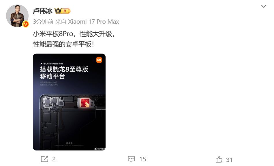 骁龙8 Elite加持:小米平板8 Pro正式官宣