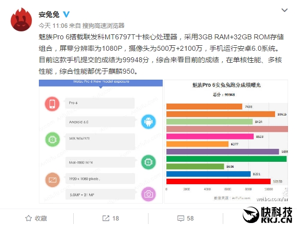 魅族新旗舰PRO 6配置曝光:跑分完胜麒麟950