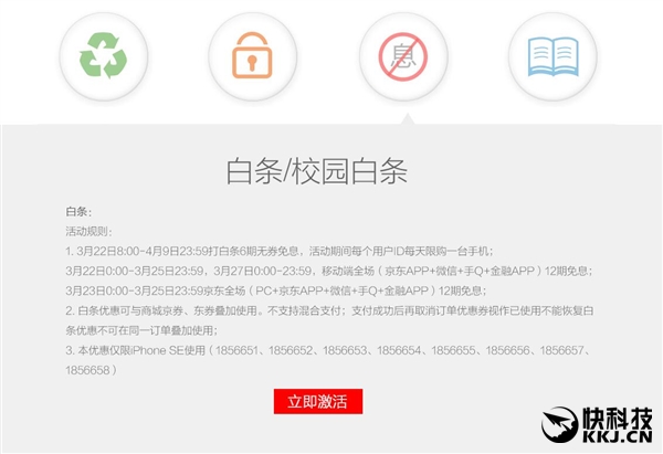 3、京东白条/校园白条:活动期间下单购买iPhone新品用户最少享受白条6期无券免息。校园白条用户全场12期免息,无需领取优惠券,并可叠加白条满减券、东券、京券。
