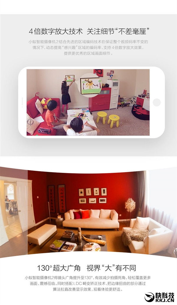 小蚁2新增“人形侦测”技术,同时结合自定义区域报警,只有当画面中出现人影时,才会激发报警推送,自动过滤掉普通摄像机因风吹草动、光线变化引起的频繁信息报警,提高报警精度。