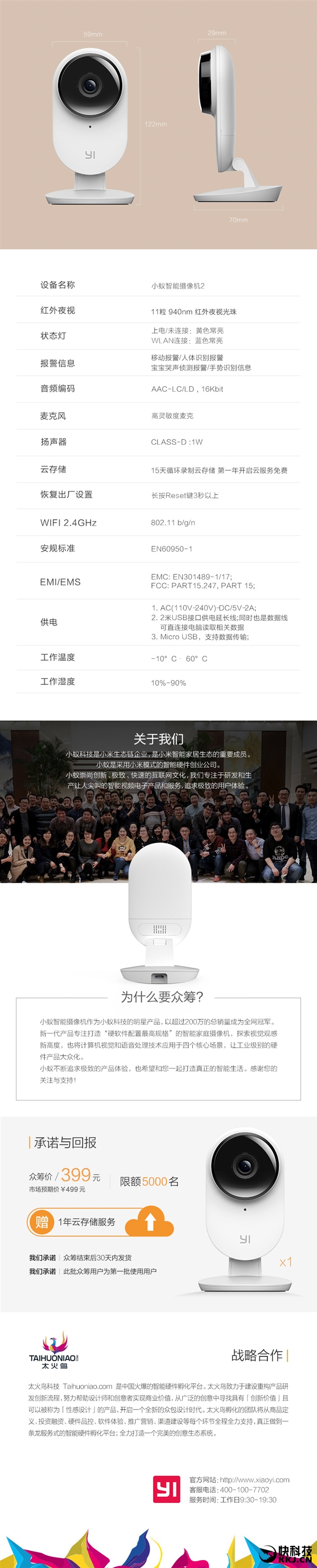 价格方面,小蚁2众筹价399元,目前正在预热中,将在2天后正式开卖,限5000名。