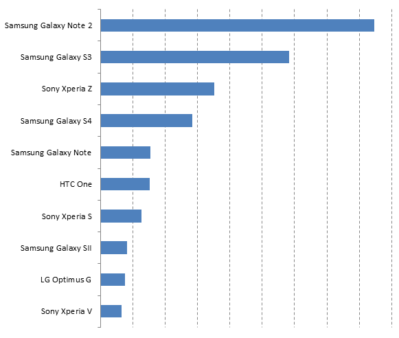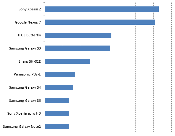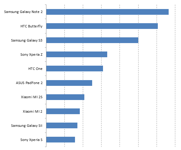 从流行榜中,我们看到小米2S和三星Galaxy S4之间在用户拥有量上的差距,同时考虑到两款产品在市场中的价格因素以及硬件配置上的情况,我们从一定角度上可以认为:中国区的消费者在购买智能设备时会更多的会比较偏向于具有高性价比的产品。