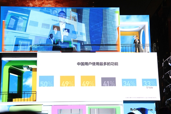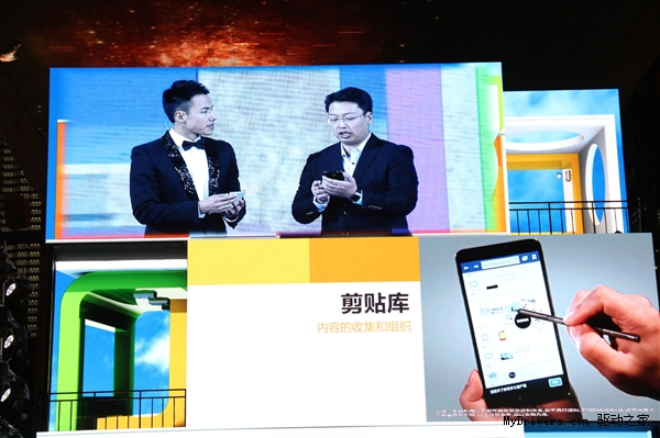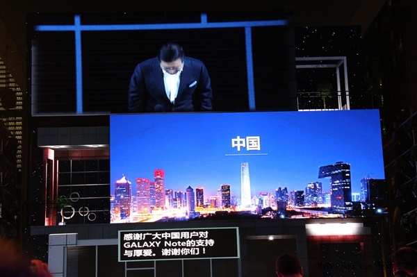 最后再来聊一下三星的发布会会场,这次三星别出心裁的将发布会设计为半露天形式,顶部就是世贸天阶广场的吊顶显示屏,舞台则用几块大屏幕装修成了一座“别墅”,整体视觉效果非常棒,确实是花了很大的心思。另外著名影星+导演赵薇也在发布会临近末尾的时候登台,并获赠了一部Galaxy Note 3。