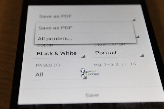 用户界面方面,除了过渡动画变得更流畅了之外,相机功能界面也进行了较大的改变。在Android 4.4的相机界面中新增了与Instagram类似的多款滤镜以及打印菜单,允许用户连接本地或网络打印机打印照片,同时还可以设置纸张大小、颜色、打印方向和打印页数等选项。