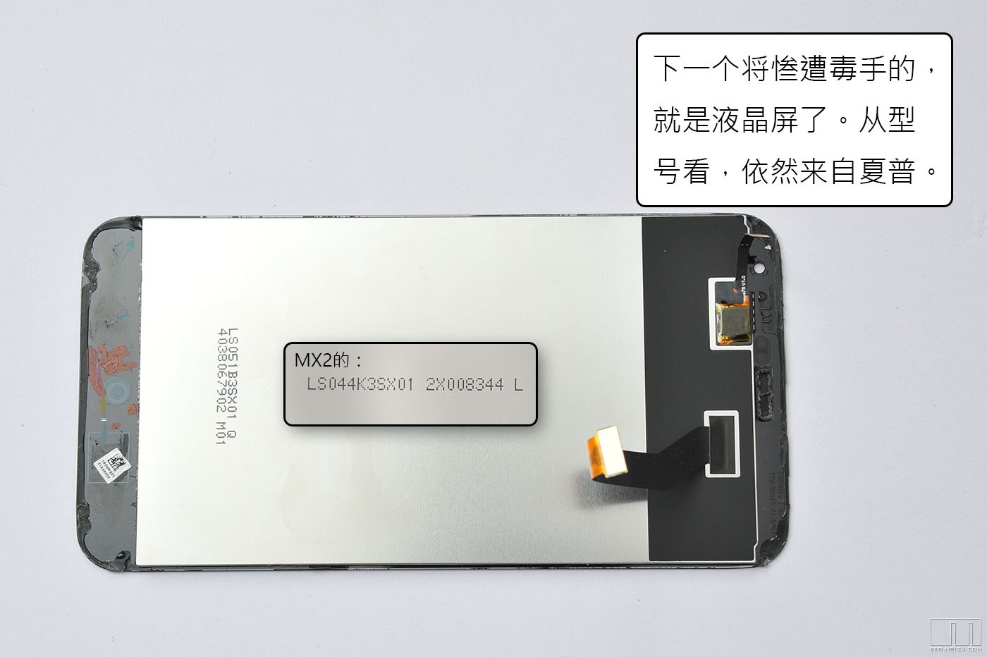 今天跑题有些多啊,还是把注意力放在拆机上,咳咳。MX3的屏幕来自夏普,面板技术是New Mode 2,这是夏普自创的名词,其实也就是高级IPS而已,MX2也是。工艺上,为了达到低功耗高开口率,使用了夏普独家的CGSi,连续粒状结晶技术,目前来看应该没有比这更好的面板工艺了(也许楼主孤陋寡闻),当然价格也不会便宜。