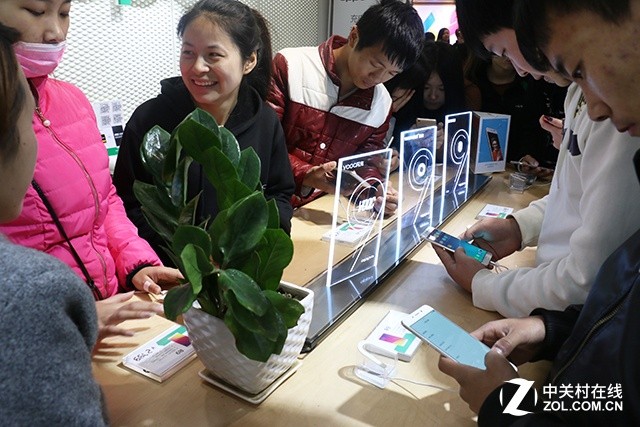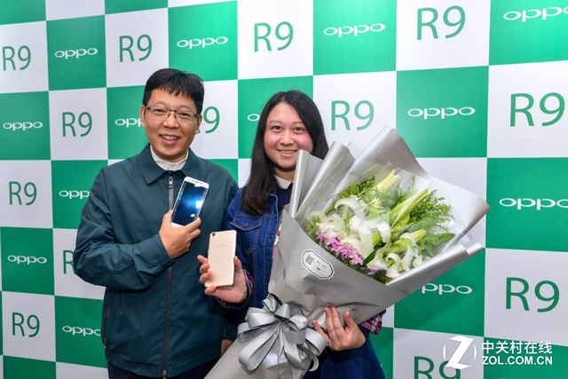 剪彩仪式完毕,早已在门外排起的购机长队缓缓步入旗舰店内,第一位拿到爱机的女士怀抱鲜花迫不及待地与别人分享购机过程,看来官网刚一开启预购他就果断入了一台,OPPO R9前置高达1600万像素的摄像头是她最喜欢的地方。