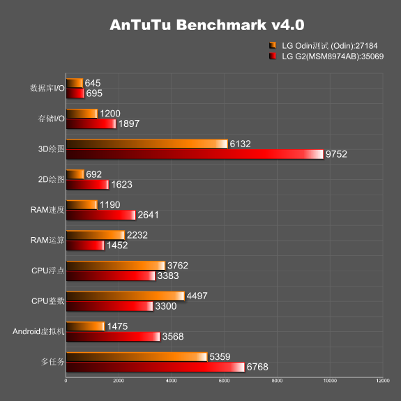 2、CPU浮点、整点的成绩明显超过骁龙800,LG自己的CPU运算部分实力很有看头。