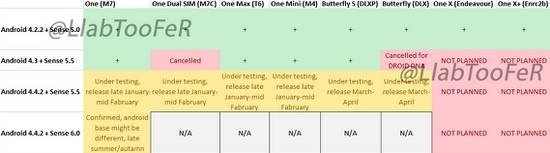 另外,规划图中也表明,仅有HTC One会在2014年夏末或秋季接收另一个更新,这个更新包括Sense 6.0以及Android 4.4.2的后续版本。