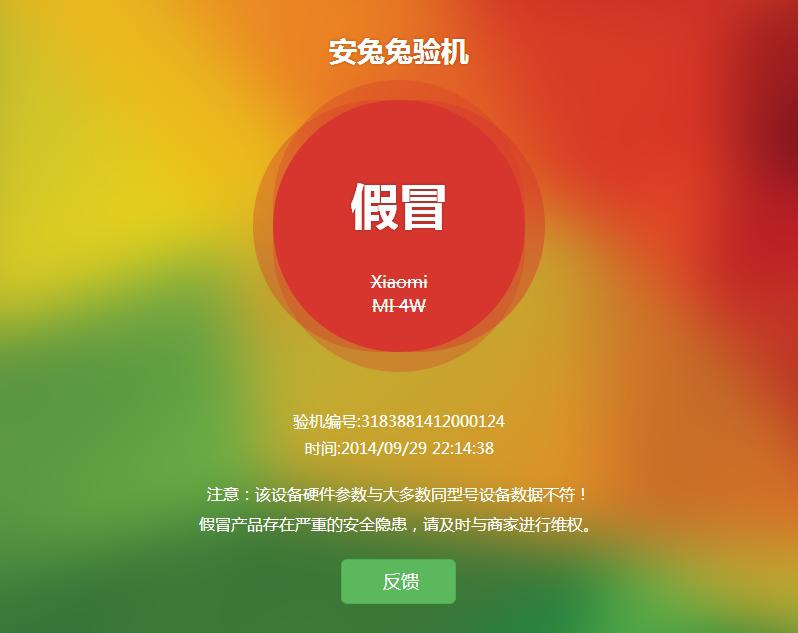 *重要提示:安兔兔验机4.1以下版本均无法正常在假冒手机上运行,所显示的验机结果均为不可信。