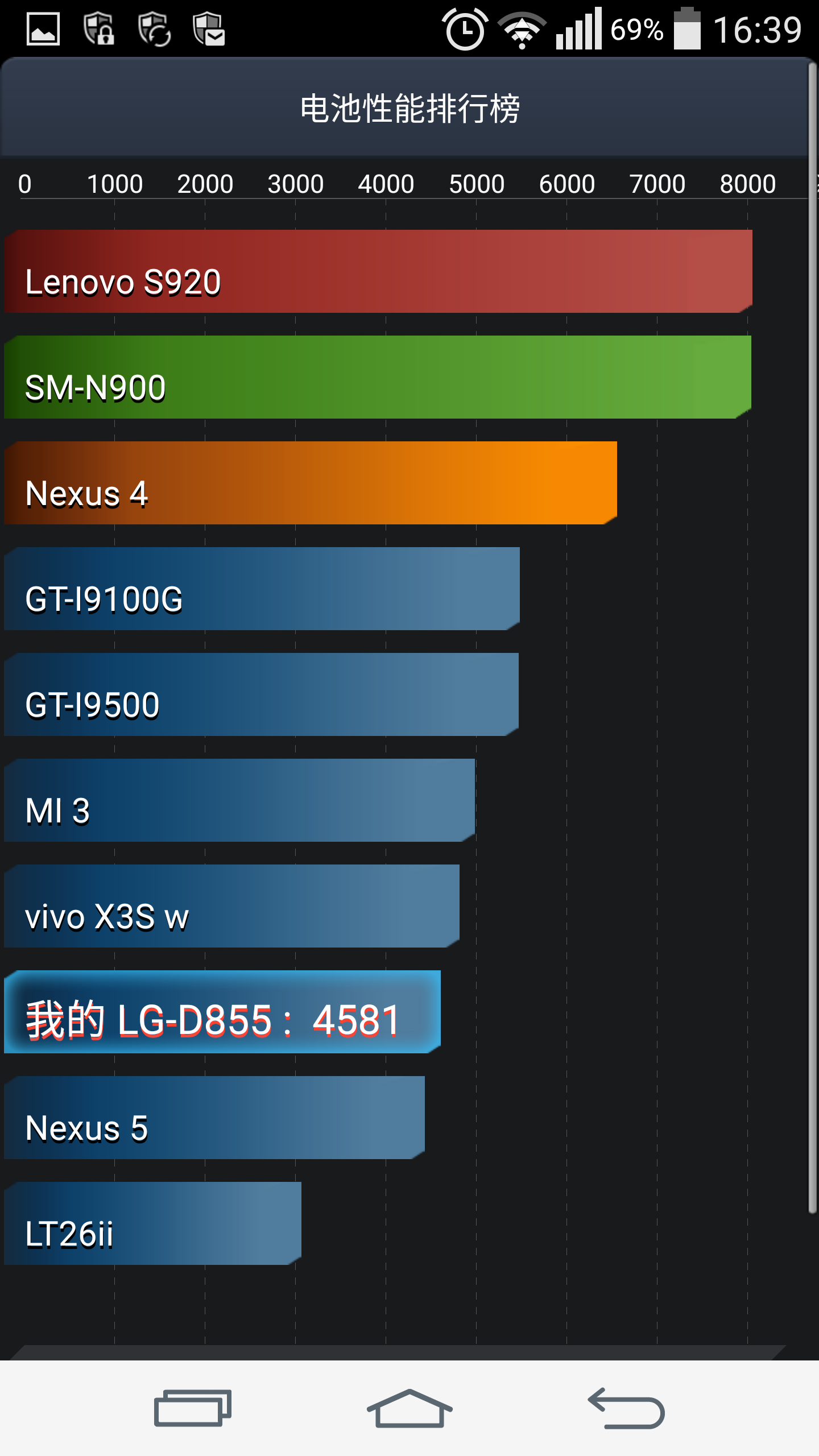 当然测试完成之后,软件还会对手机进行评分,在电池性能排行榜中罗列了各种型号的手机电池评分。通过评分我们就可以知道手机的电池性能到底怎么样了。