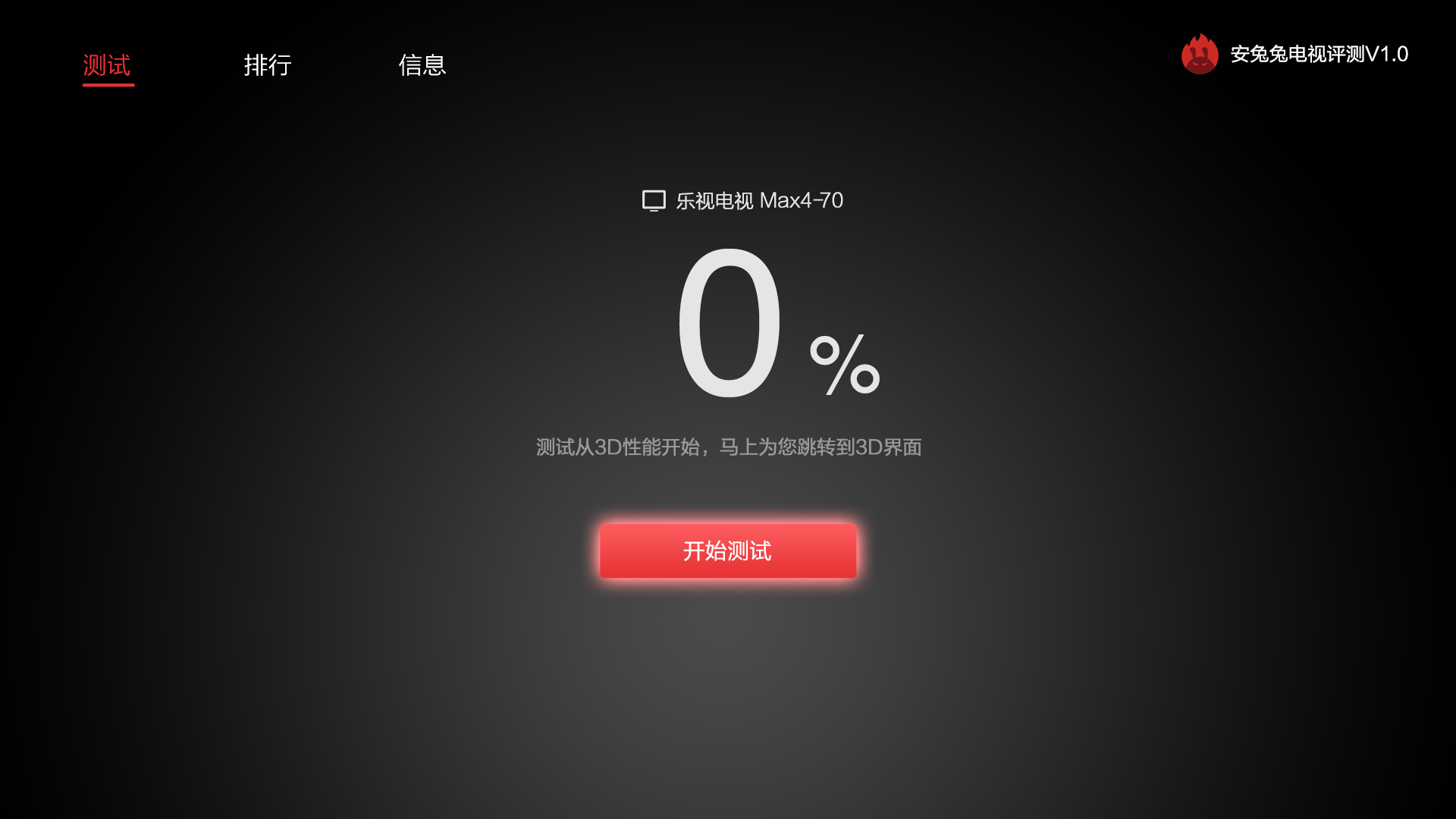 安兔兔电视评测,主要分为三个模块:测试页面,主要用来检测电视的综合性能;排行页面,主要用来性能的高低对比;信息页面,主要帮助消费者了解电视的各项参数。