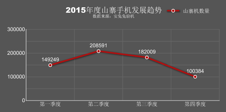 笔者整理出了2015年四个季度的山寨机发展趋势,通过分析我们可以看出第二季度的山寨机数量最多,第三季度、第四季度呈现明显下降趋势,第四季度的山寨机数量最少。笔者分析造成山寨机数据下降的原因,分为以下几点: