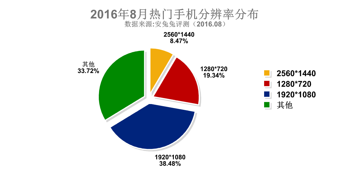 大家从上面的分辨率分布图中可以看出,1080P(38.48%)>720P(19.34%)>2K(8.47%)是时下比较热门的三种屏幕,其中排名第一的1080P屏幕的使用率已经超过第二名720P屏幕近一倍,在今后的很长一段时间内它将依然保持着主流地位。2K屏幕的画质虽然最好,但受制于帧数过低的硬伤,在技术没有得到突破的前提下很难成为市场主流。