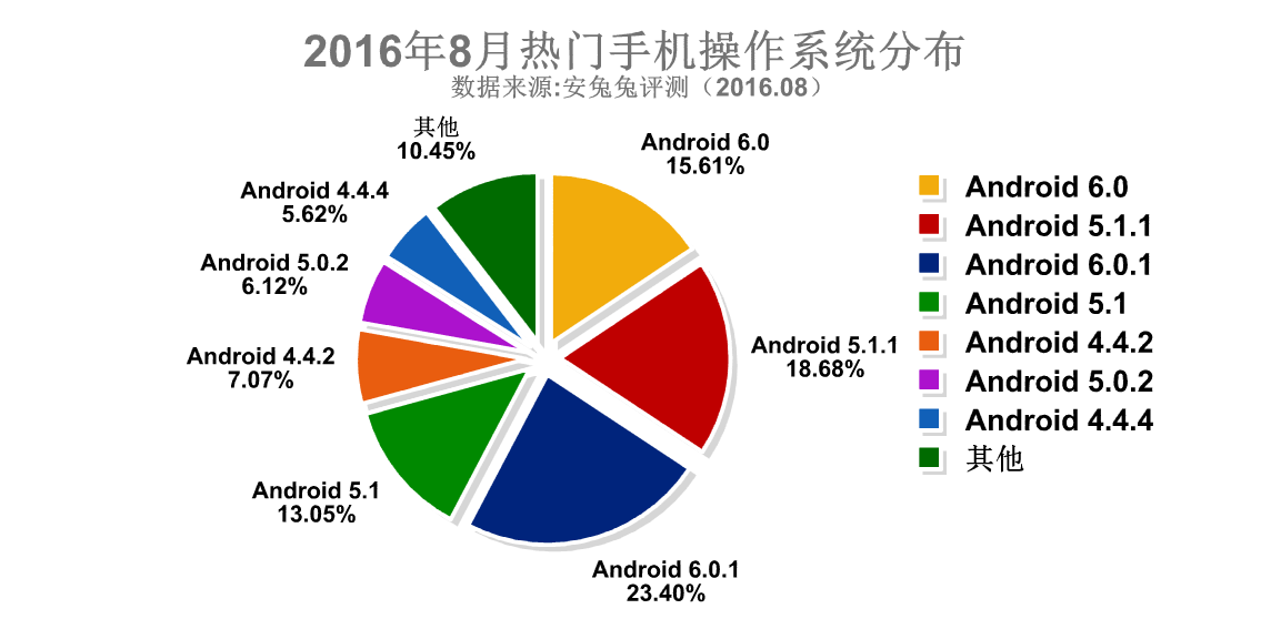 8月份热门手机操作系统分布:安卓6.0.1一马当先