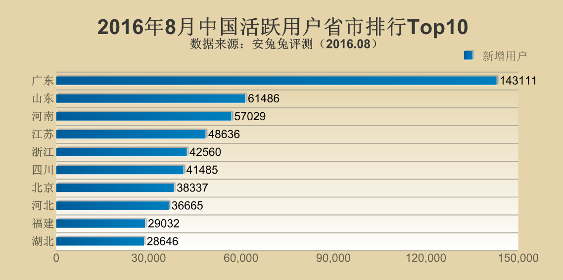 中国手机用户活跃省份分布:广东省依然盘踞第一