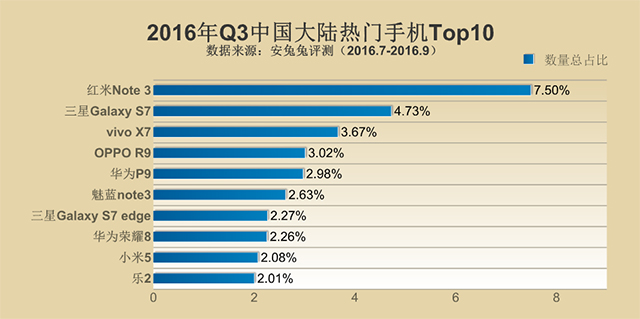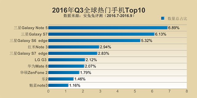 PS:因为三星Galaxy Note 7,相关机型被召回,因此相关的数据不再作为榜单参考。