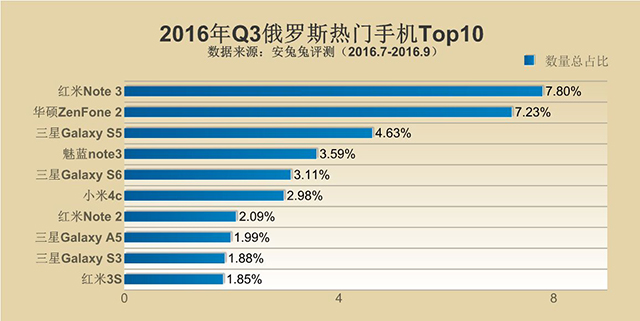 俄罗斯市场方面,三星手机的占比依然较多。不过我们在榜单上也看到了不少的国内千元机,究其原因是因为,一方面,国内的一些手机已经正式登陆的俄国,另一方面是中国作为俄国的邻国,中俄边境有着很频繁的经济交易。国内的一些千元手机,或者一些低价手机对于俄国人民来说,诱惑力十足。