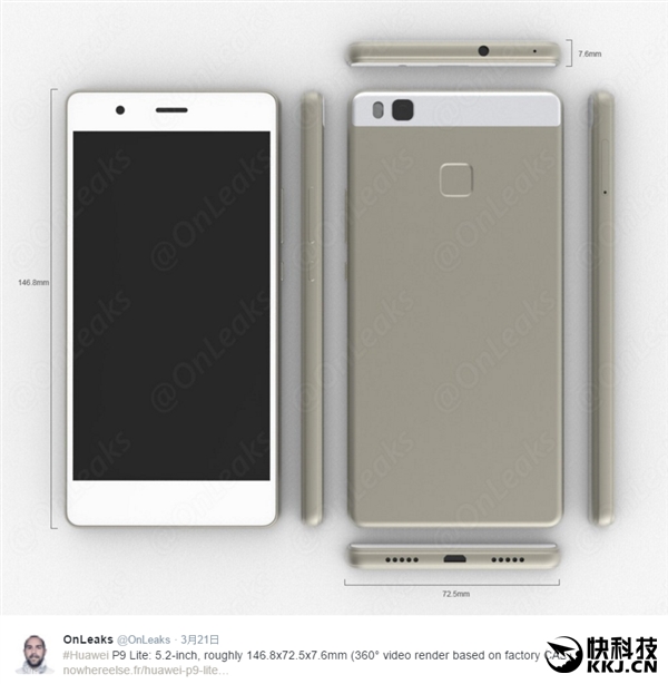 华为P9 Lite渲染图曝光:果然没双摄像头