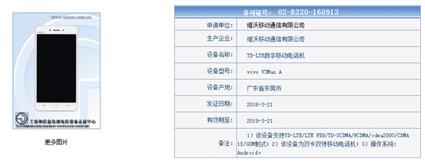 该机其实有两个版本V3Max A、V3Max L,其中后者只能在3C认证中心看到,具体规格不详,可能是不同制式版本,比如双4G。