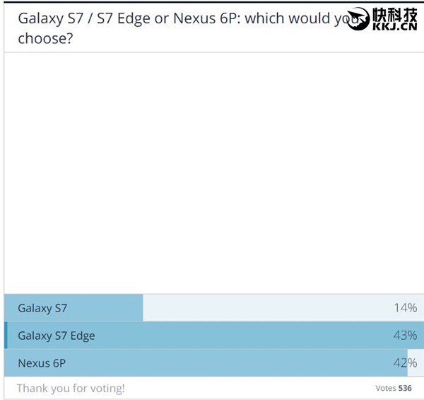 从目前的投票结果来看,还是有些意外的。S7只拿到了14%的票数,Nexus 6P则高达42%,几乎和S7 edge看齐。