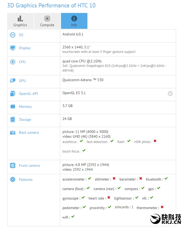 现在,GFXBench测试数据库里时候崔出现了HTC 10,证实了主要配置规格。