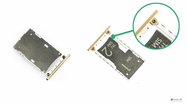 不过,镁铝合金前壳并未配合卡托防呆,仅卡座配合卡托实现防呆。