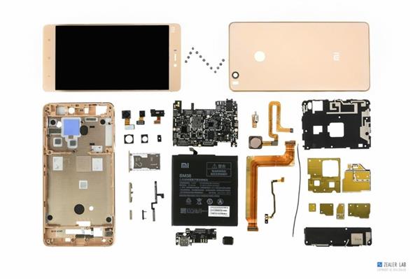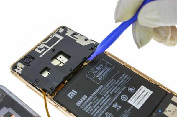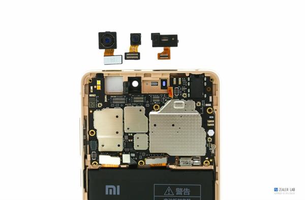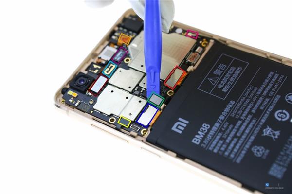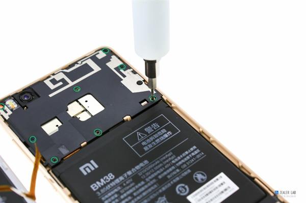 总体来说,小米 4S 延续小米手机一贯的产品架构理念——设计简约,拆卸简单。 总结构零件数仅有 31 颗,结构数量少,装配简洁,且螺丝数量总共才 13 颗。这样设计的好处,利于整机成本控制和生产装配,同时,也利于售后维修,这无不同小米走的低价战略相协调。同时,小米也非常注重内部美观性设计,不管是电池增加黑色 Label 纸,玻璃后盖内部丝印黑色油墨,黑色的天线支架和喇叭 BOX,FPC 表面都有丝印黑色油墨,还是前壳内表面有做阳极氧化,无不看出小米对内部美观性的重视。