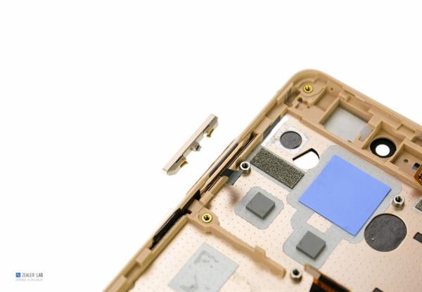POWER 键键帽采用钢片固定,相比小米 Note 侧键采用「小钢针」固定来说,更利于生产装配和售后维修;