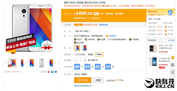 关键参数缩水,价格却维持1499元不变,实在不知道魅族葫芦里卖的什么药,而苏宁可能也是意识到了这一点,推出了优惠活动:预付定金99抵199,所有定金用户购买成功赠送魅族太空杯。4.5日付尾款。随手机附赠EP-21HD耳机!