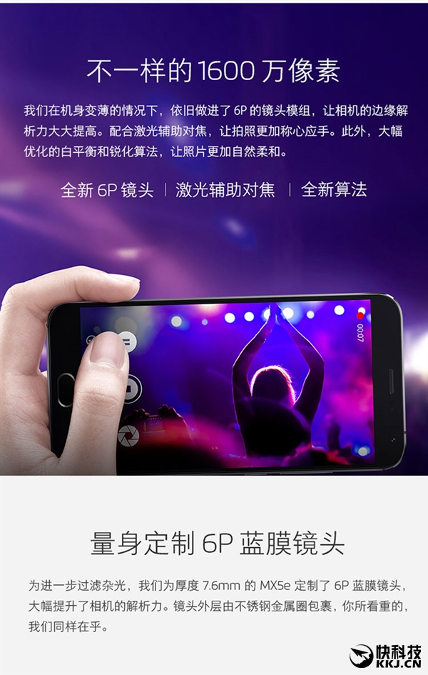 通过对比可以看出,MX5e青春版相比于MX5有两处主要变化,一是处理器从Helio X10 MT6795T 2.2GHz降低为Helio X10 MT6795 2.0GHz,也就是从高频版变成了标准版,二是后置主摄像头从2010万像素降低为1600万像素,搭配6P蓝膜镜片,传感器未知。