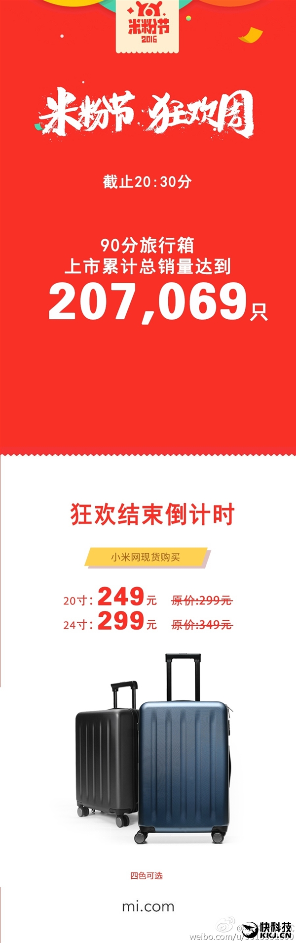 另外,小米生态链的90分旅行箱截止到6日20点30分,上市累计总销量突破20万只,达到了207069只。
