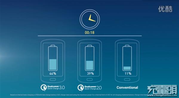 去年,美国高通公司在香港首次展示了Quick Charge 3.0快速充电技术,宣称Quick Charge 3.0与Quick Charge 2.0相比,帮助提高快速充电速度最高达27%,或减少功率损耗最高达45%。据美国高通公司官方介绍,在充电选项方面,Quick Charge 2.0提供5V、9V、12V和20V四档固定充电电压。