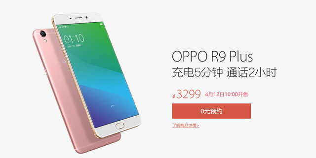 中关村在线讯:上个月,OPPO在北京发布了OPPO R9/ R9 Plus两款旗舰新机。3月24日,OPPO R9已经在线上和线下开卖了,上市首日就卖出18万台,开售4天销量就超过了40万台,创下了2016年国产手机周销量的冠军。而OPPO R9 Plus作为R9兄弟机型,自然也不会落后,将于4月12日正式开启销售,OPPO方面已经准备充足,可谓万事俱备只欠东风。