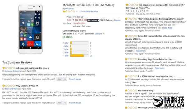然而据WMPU报道,作为新兵家必争之地的印度市场似乎对这款手机不买账,负面评论已然爆表,整体评价只有1.5颗星