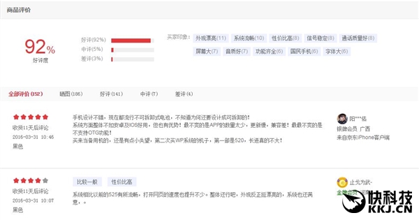 再回到国内,Lumia 650的价格是1699元。相对而言,国内用户相对理性,笔者在第三方平台京东看到,Lumia 650的好评还是占到了多数。