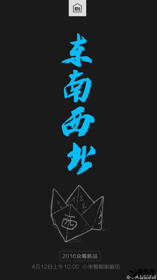 关于这款新品目前还没有什么明确的消息,小米智能家庭官方微博放出的图片中有“三百六十度”和“东南西北”等字样,并不是很容易猜。