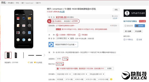 虽然官方还没有宣布Smartisan T2降价,但在京东上,Smartisan T2已经有很大幅度的优惠了。