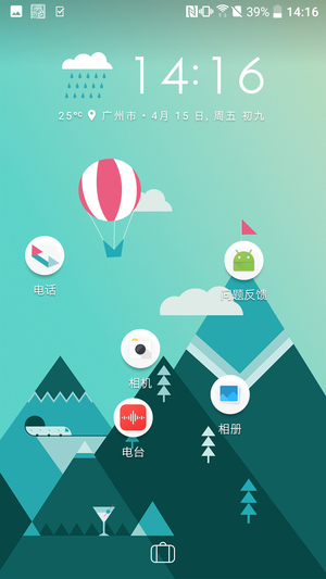 HTC Sense新增了一个特别的桌面主题——Journey。在应用该主题的情况下,用户可以根据自己的喜好随意摆放APP图标和桌面挂件,而且不受宫格影响,可以摆放在桌面上的任意位置。目前极少有定制系统提供这样自由摆放的主题,据小编所知,除了HTC Sense之外,目前仅有TSF Shell桌面启动器支持这种模式。