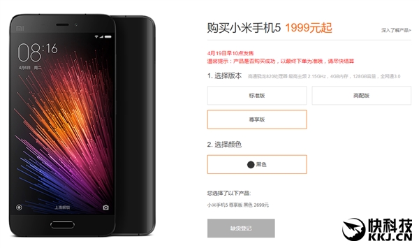 明天又是周二,小米5将将开启新一轮的现货购买。从小米官网公布的消息来看,本次开放购买中,小米5的三个版本均会跟我们见面,具体包括1999元的标准版(可选黑白双色)、2299元的高配版(可选黑白双色)以及2699元的尊享版(仅黑色)。