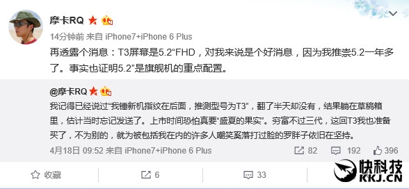 微博爆料达人@摩卡RQ 刚刚放出了锤子T3的最新消息。他表示,T3的屏幕为5.2英寸1080p,而这个尺寸也将是今年安卓旗舰机的重点配置。