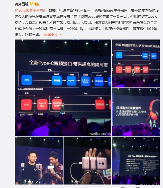 业内知名分析师孙昌旭表示,数据、电源与音频孔三合一的设计,苹果iPhone 7也会采用,不然乐视贾跃亭也没有这么大的底气在安卓阵容中率先发布。两年以前oppo曾经尝试过三合一口,但那时没有Type-C支持,没有流行起来。