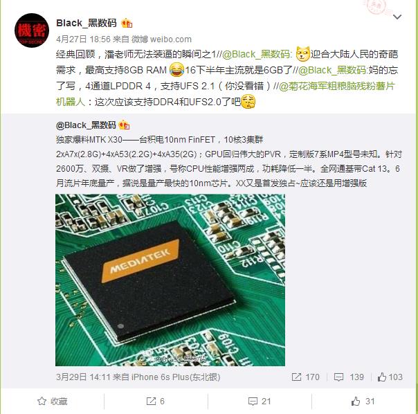 @Black_数码黑爆料Helio X30(图片引自新浪微博)