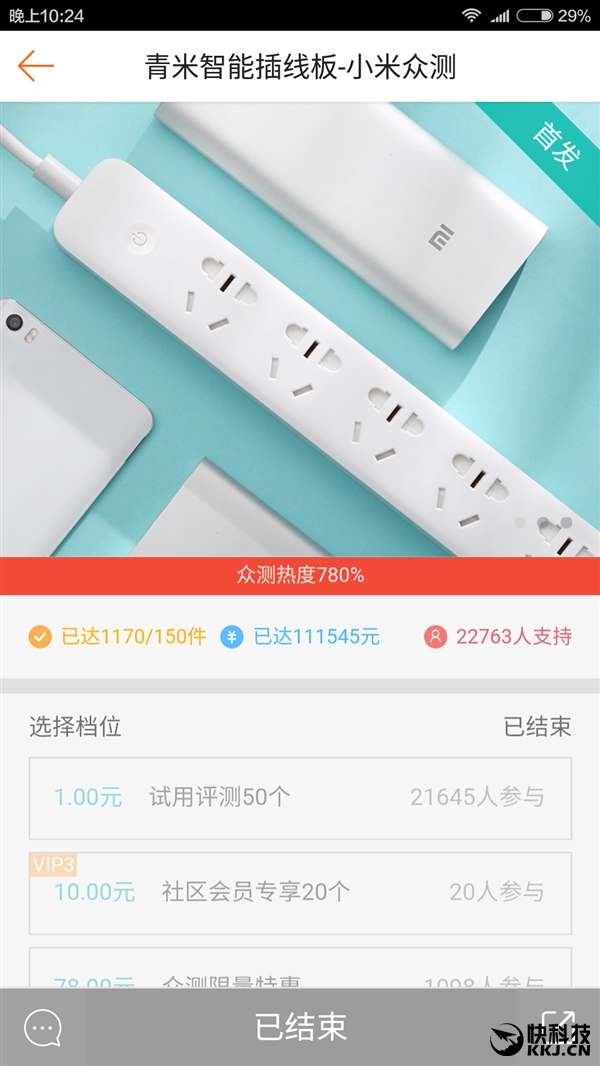 今天中午,由小米插线板原班团队打造的青米插线板在小米社区开启众测,1元起步,结果异常火爆,刚刚半天就提前结束了。