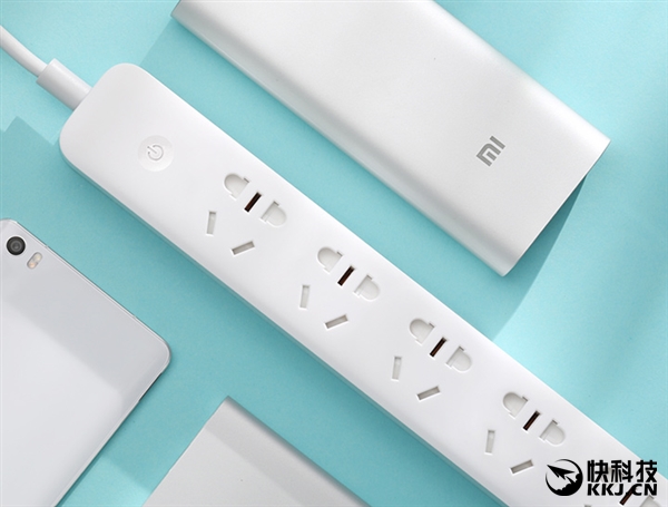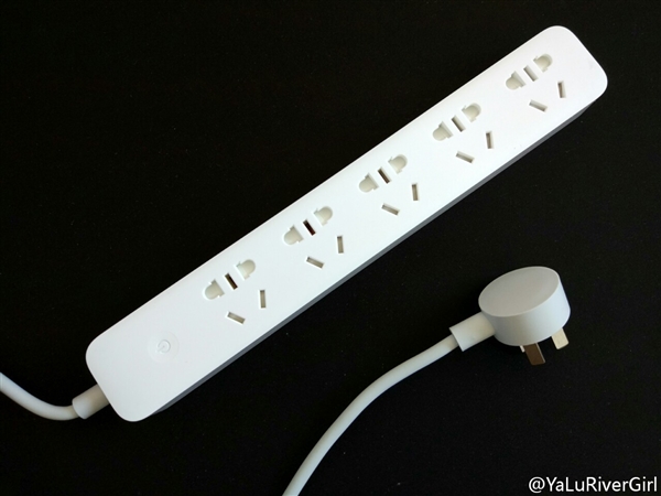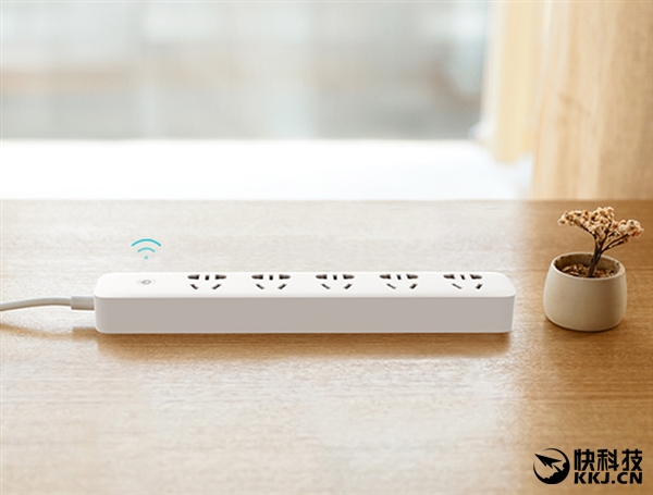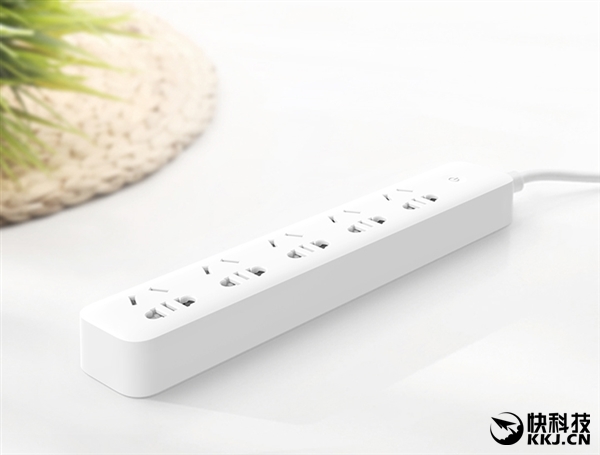 青米科技的这款智能插线板设计类似小米五孔位版,具有5个新国标插孔,和一个圆形的电源开关,支持远程操控、异常自动断电、电量实时查询、定时开关等功能。