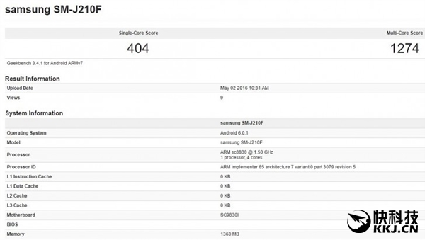 现在,GeekBench上出现了一款SM-J210F的手机,从命名来看,该机有望定名为J2,是J系列最低价的产品。