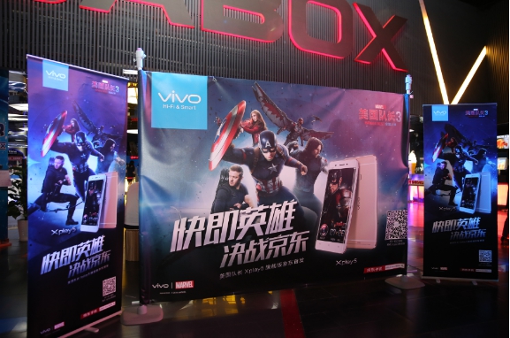 上周备受期待的漫威巨作《美国队长3》终于同步登陆中美两地院线,加上此前提前上映的部分地区,《美国队长3》上映不到2周就贡献了6.78亿美元的全球累计票房,其中仅大陆地区上周上映3天就斩获近9600万美元(超过6亿人民币)票房,而北美地区首周末票房也创造了1亿8179万美元,用席卷全球来说毫不夸张!所以《美国队长3》的各种商业合作伙伴也必然火爆,这其中不得不提的就是vivo,其在5月6日《美国队长3》上映当天同期推出的美国队长Xplay5旗舰版预售火爆,广受欢迎和追捧,获得了相当不错的口碑。而在这个周末,由V粉自发组织的观影会也在全国50个城市,进行了超过75场的《美国队长3》包场活动,超过万名V粉用自己的实际行动,支持了vivo以及《美国队长3》。在北京,还与京东一起,举办了#快即英雄,决战京东#美国队长Xplay5旗舰版京东首发(vivo京东官方旗舰店https://sale.jd.com/act/vGWKogOy2nbPpQ.html)线下观影会。